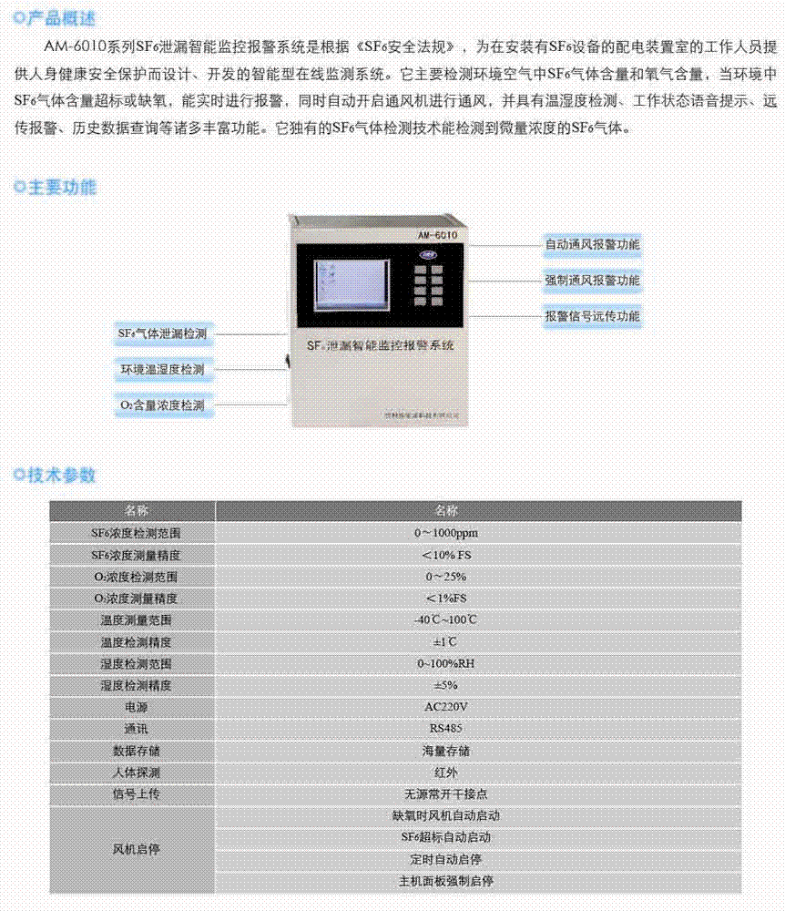 >> AM-6010 SF6气体泄漏智能监控报警系统